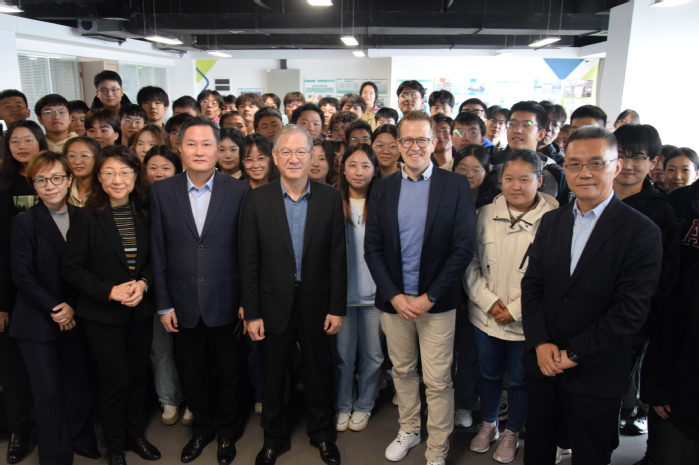 10月22日,大众汽车集团(中国)执行副总裁霍飞明博士(Dr. Martin Hofmann)率代表团来访太阳城,深入调研中德合作及大众学院建设情况。党委书记王其东会见大众集团代表,党委委员、教务处处长兼大众学院院长王晓峰,国际交流合作处、大众学院主要负责人参加活动。