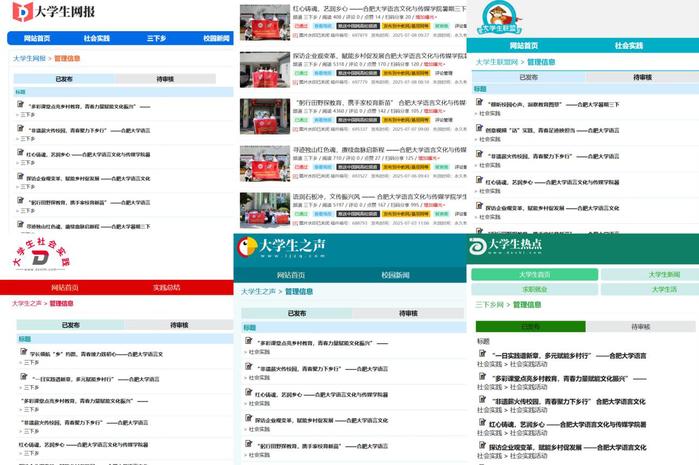 团队秉持以文化浸润乡土,用传媒连接城乡的理念,共计发布72篇新闻稿,向包河青年、裕安共青团等17个网站投稿,阅读量达46795次。制作并发布了3条话题Vlog和《情系裕安八载行:青春赋彩乡村路》等4条创意视频,收获浏览量22721次,多维传播了乡村振兴新成果。