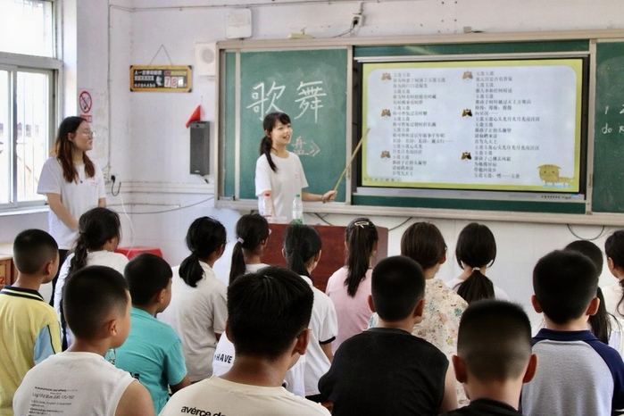 团队针对农村留守儿童、新蓝领家庭儿童开展公益支教,紧扣“语言筑基、文化浸润”理念,打造了古诗文班、吟诵班、国学班、武术班、歌舞班,共招收63名儿童,累计50学时。活动期间,团队联合包河区团委、优秀校友孙荣锦发放共3500余元的体育用品和文具。武术班还特邀非遗阴阳双合拳传承人授课,这些举措有效弥补了乡村素质教育资源的不足,为孩子们送去快乐、点燃希望。