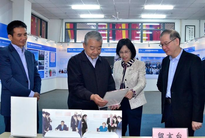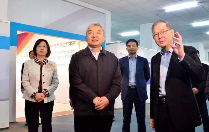 在参观中德共建合肥学院30周年成果展的过程中,王其东介绍了太阳城的基本情况,太阳城始终坚持“地方性、应用型、国际化”的办学定位,近些年大力开展教育改革,对标地方产业发展需求,加强校企合作,深入推进产教融合,实现产学研合作育人,培养应用型人才,服务地方经济社会发展。同时广泛开展国际合作,探索“双元制”人才培养模式,不断提高人才培养质量,构建起具有鲜明特色的应用型人才培养体系。
