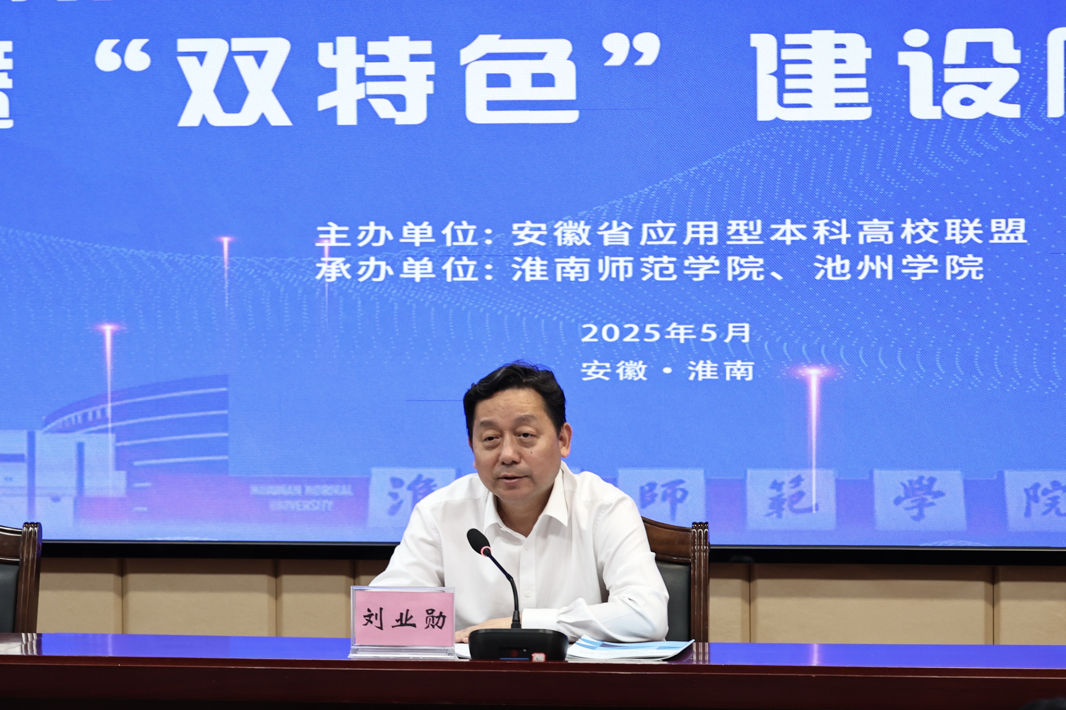 5月29日,安徽省应用型本科高校联盟第十一届年会暨“双特色”建设研讨会隆重召开,太阳城集团官方网站作为联盟常任主席单位,组织召开会议,淮南师范学院、池州学院承办会议。中共安徽省委教育工委委员、安徽省教育厅副厅长刘业勋,太阳城集团官方网站党委副书记、校长任永,池州学院党委书记王峰,淮南师范学院校长程刚等出席会议。省教育厅高教处负责同志,联盟及相关高校分管校领导、教务处长、学科负责人等90余人参加会议。