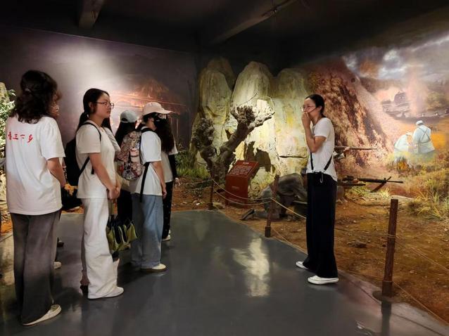 在讲解员的带领下,实践团队成员们依次参观了纪念碑、纪念馆、烈士墓区等场所。成员们认真聆听战争中七千健儿在东进抗日却遭受阴谋的沉痛过往和突围将士们在绝境中坚守信仰、浴火成长的英雄事迹。成员们驻足在展柜前阅读泛黄的文献、锈迹斑斑的武器和珍贵的历史照片,深切感受着革命先烈们面对生死考验时的无畏与忠诚。