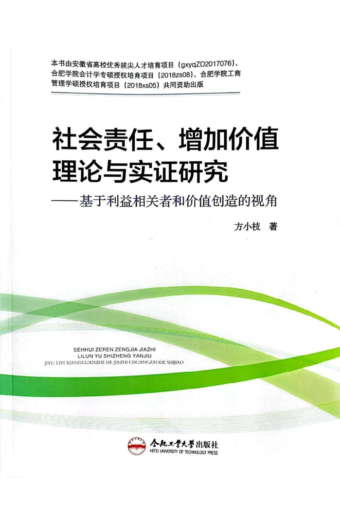 专著《社会责任、增加价值理论与实证研究——基于利益相关者和价值创造的视角》以利益相关者理论和社会责任理论为主要理论基础,重点探讨了企业社会责任理论,并基于该理论对上市公司增加价值的界定、分配,企业社会责任的界定和测度、公司治理、企业捐赠行为等基本问题进行了细致的研究,使用固定效应的模型验证了我国企业社会责任与财务绩效之间的关系,建立一个基于所有利益相关者对增加价值作用机理的框架,研究了公司治理对增加价值创造的异质性影响。