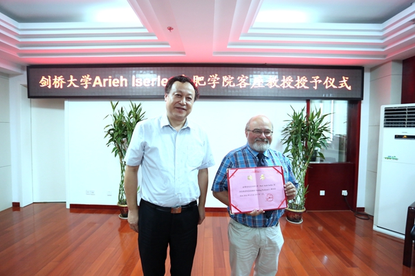 8月16日,英国剑桥大学应用数学和理论物理系教授、分析中心主任Arieh Iserles受聘太阳城客座教授。南京大学数学系教授吴新元,剑桥大学博士Marcus Webb,合肥学院党委书记蔡敬民出席这次聘任仪式,人事处处长陈爱娟、科技处副处长汪潘义、数理系党总支书记童玉松、数理系主任牛欣与数理系师生共同参与了此次仪式。