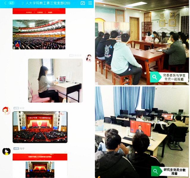 各会场气氛庄重、秩序井然,大家聚精会神,边听边记。广大师生党员对习近平总书记所作的报告反响热烈,深感振奋,备受鼓舞,纷纷畅谈感想和体会。大家一致认为,中国共产党第二十次全国代表大会,是在全党全国各族人民迈上全面建设社会主义现代化国家新征程、向第二个百年奋斗目标进军的关键时刻召开的一次十分重要的大会。要更加紧密地团结在以习近平同志为核心的党中央周围,深刻领悟“两个确立”的决定性意义,增强“四个意识”、坚定“四个自信”、做到“两个维护”,全面贯彻习近平新时代中国特色社会主义思想,坚持为党育人、为国育才,全面贯彻党的教育方针,落实立德树人根本任务,培养德智体美劳全面发展的社会主义建设者和接班人。