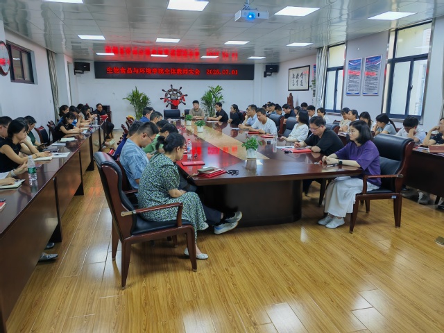 为全面部署期末重点工作,统筹安排暑期各项任务,2025年7月1日下午,生物食品与环境学院召开全体教师大会。会议由学院党委书记李秀娟主持,学院领导班子成员及全体教师参会。
