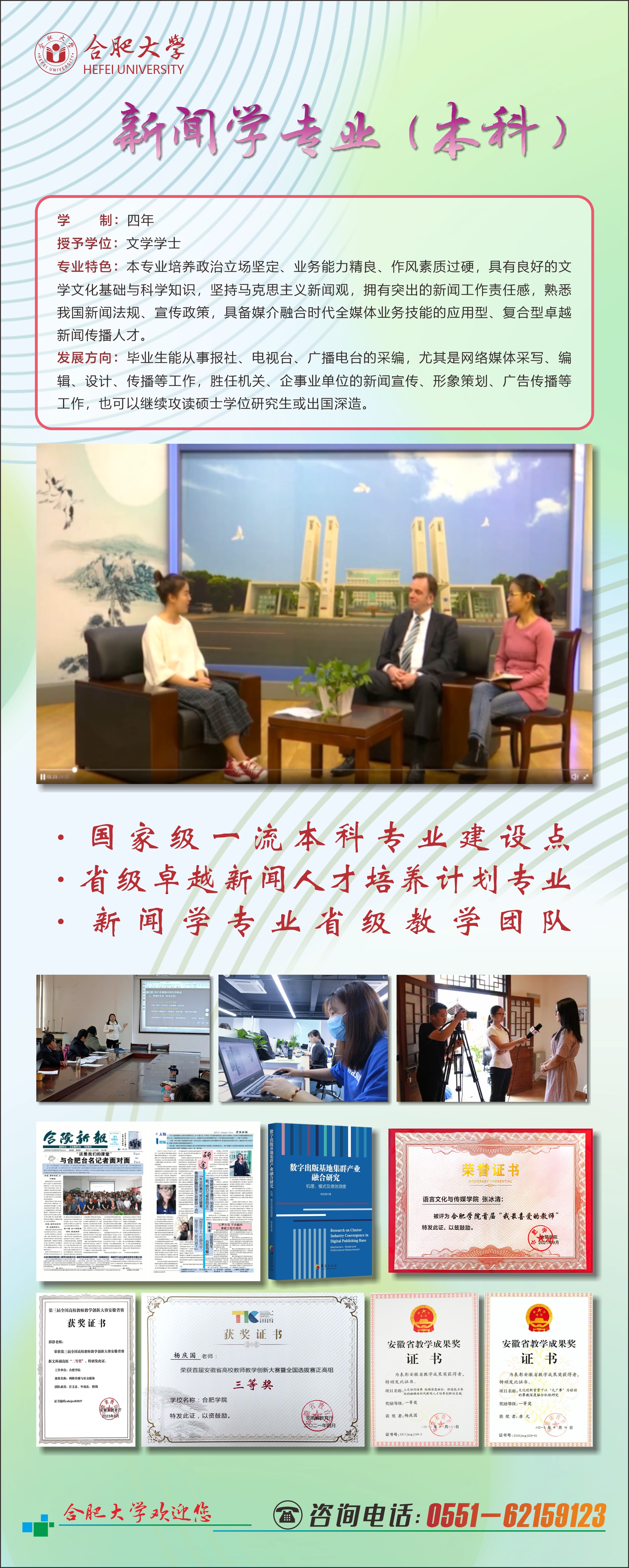 新闻学(本科) 咨询电话:0551-62159123