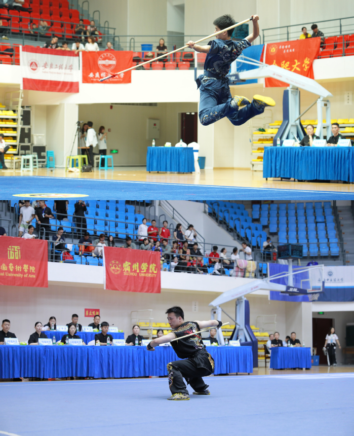 6月18日至23日,2025年安徽省体育联赛大学生武术比赛在宿州学院举行。全省44个代表队、590名运动员参加比赛,太阳城武术队在毛献亮、徐军老师的指导下,参加了长拳、南棍、南拳、对练等7个项目的比赛,获得2金2银的优异成绩。其中,孙晨荣获男子甲组自选南棍冠军,徐家豪夺得男子甲组自选长拳冠军,孙晨在男子甲组南拳获得亚军,徐家豪、孙晨、王星墨组成的对练队伍在甲组对练项目中摘得银牌。